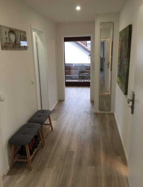 wir vermieten unsere renovierte und hochwertig voll möblierte 2,5-Zi.-Nichtraucher-Wohnung (ca. 57 qm) mit Einbauküche und Waschmaschine, Tageslicht-Bad mit Doppelwaschbecken, Dusche und separatem WC, überdachtem Balkon (möblierte Loggia) in sehr ruhiger Südwest-Ortsrand-Lage mit Blick ins Grüne an ein oder zwei ruhige Person(en).