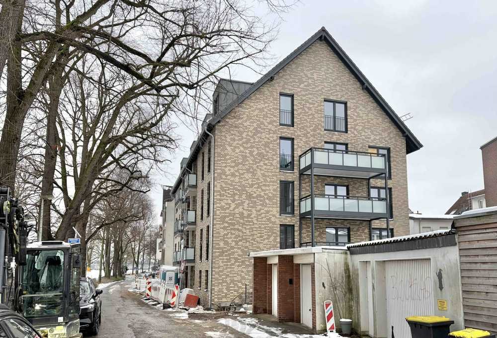 Neubau Uerdingen: 2 Zi-Wohnung mit Balkon am Rheinufer mit Aufzug, Wärmepumpe & KFW 55, Tiefgarage