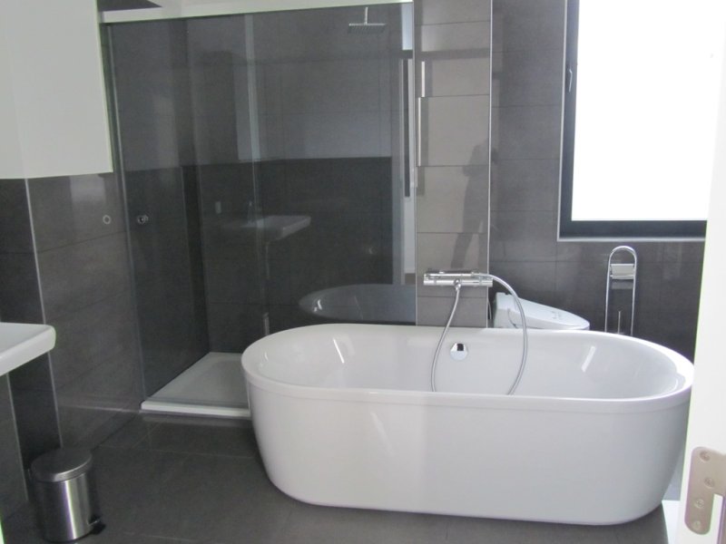 Zur Wohnung gehört praktischerweise eine vollständige Einbauküche. Eines der beiden Schlafzimmer verfügt über eine Ankleide. Das Tageslichtbadezimmer hinterlässt mit Deckenspots, begehbare verglaste Dusche, zusätzliche Badewanne, Handtuchheizkörper, sichtlich einen positiven Eindruck. Selbstverständlich gibt es auch eine Gästetoilette mit Waschbecken. Das Highlight dieser Wohnung ist das Lichtdurchflutete offene Wohn- Ess- und Kochbereich mit Blick auf einen in der Nachbarschaft liegenden alten Baumbestand.