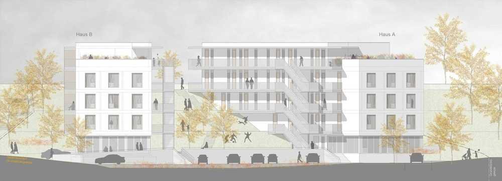 Die Dachterrasse (Nutzung: Bestuhlung und geplant sind Hochbeete) steht allen Bewohnenden zur Verfügung.