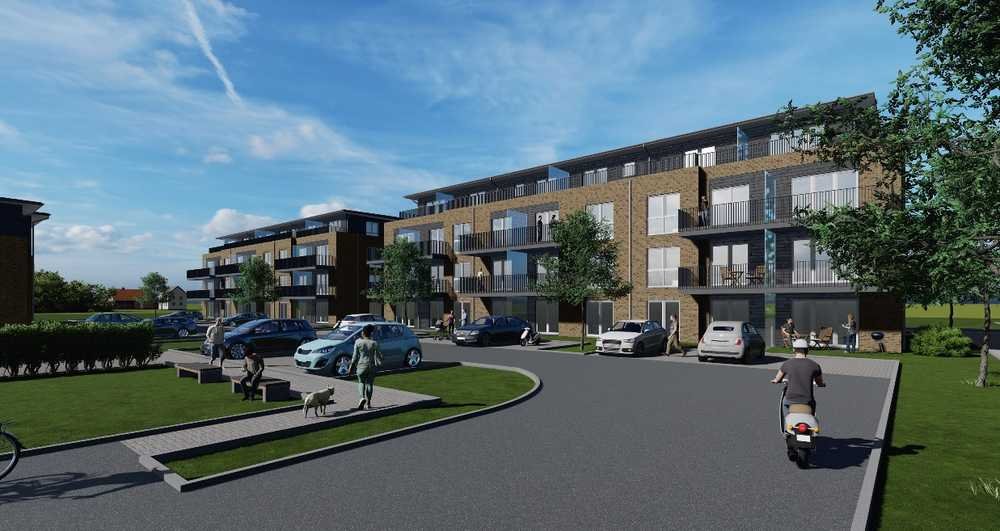 Die Fassade des Mehrfamilienhauses ist geprägt durch ein hochwertiges Verblendmauerwerk und große Fensterflächen.