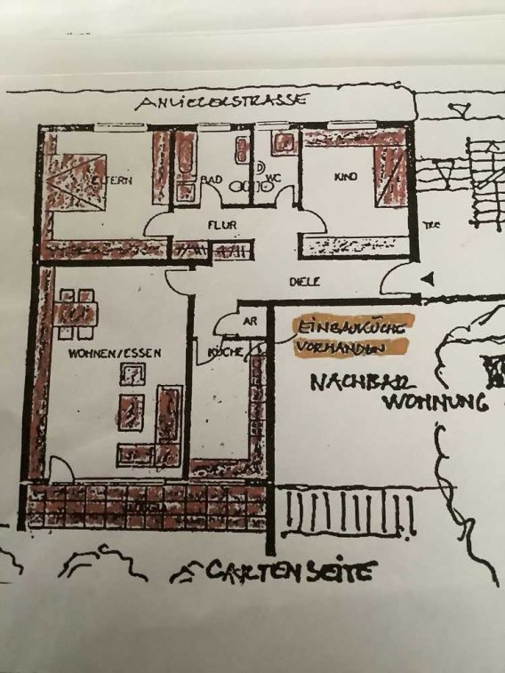 Wohnzimmer, Diele, Schlafzimmer und Kinderzimmer sind mit Parkett ausgelegt. Fenster haben Doppel Verglasung und Einbruch Sicherung. Einbauküche, Garderobe und zwei Einbauschränke.