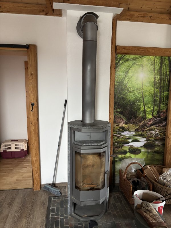 Selbstverständlich gibt es einen Schwedenofen zum Heizen und dafür hergerichteten Holzlagerplatz.