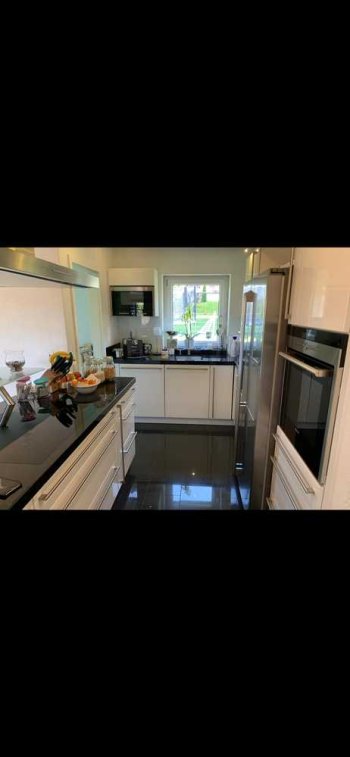 Großer Südbalkon. Separate Gäste Toilette, Bad mit Wanne, Dusche, WC und Bidet. Neuwertige moderne Einbauküche mit schwarzer Granitplatte und Glastheke. Hochwertige elektrische Einbaugeräte inclusive Dampfgarer. Esszimmer, Wohnzimmer, Büro , Ankleidezimmer(Kinderzimmer) , Schlafzimmer. Vorratsraum und Waschmaschinenraum direkt an der Küche. Elektrische Rollläden, Parkett und Granitböden neuwertig. Viel grün ruhige Lage einer Sackgasse.