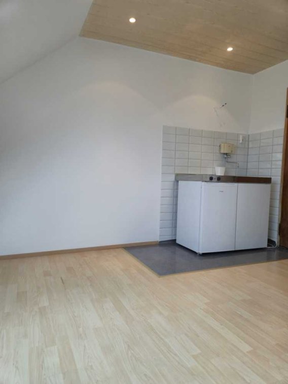 Nachdem kürzlichen Auszug wurde das Zimmer frisch saniert. Neben neuen Fliesen im Bereich der Pantryküche wurde das Dachfenster Velux Schwingfester erneuert. Die Wände des wurden neu verputzt und fachmännisch gestrichen.