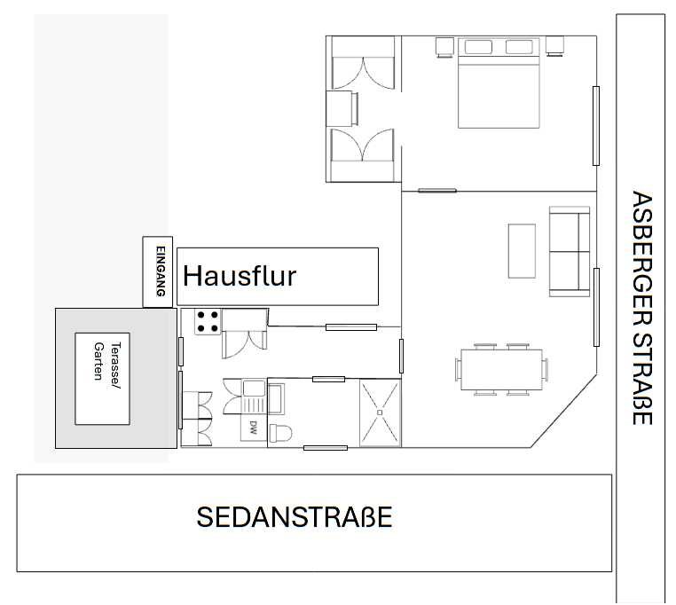Diese hochwertig und umfassend sanierte 2-Zimmer-Wohnung befindet sich im Erdgeschoss eines Altbaus aus ca. 1900 in Duisburg-Hochheide, unmittelbar an der Grenze zu Moers.